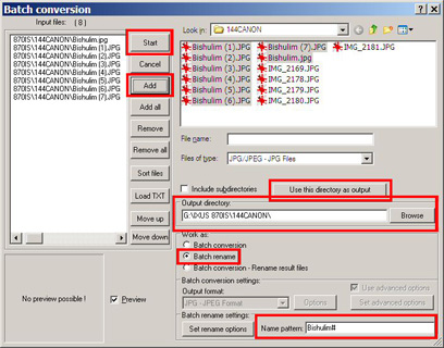 אם אתם רוצים קצת יותר גמישות בבחירת השמות, ובאופן כללי רוצים יותר שליטה בתהליך, הכלי הכי פשוט וזמין לצורך העניין היא תוכנת IrfanView החינמית. זה ייראה לכם קצת מסובך בהתחלה, אבל אחרי פעם אחת שתעשו את זה העסק יתברר כדי פשוט.